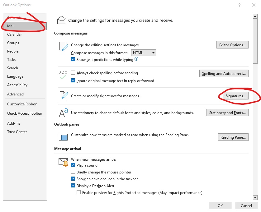 4. In the new window that pops up click on the Mail tab the click on the Signature button.
