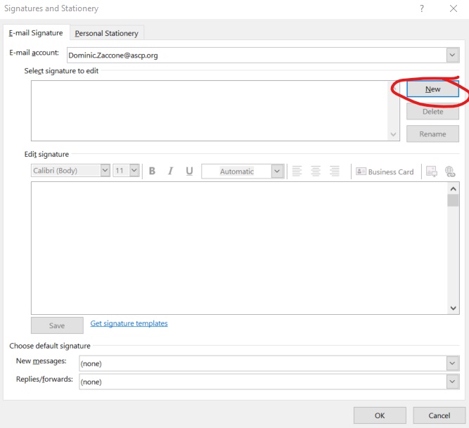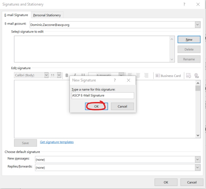 6. In the new window that pops up enter a name for your new signature then click the OK button.